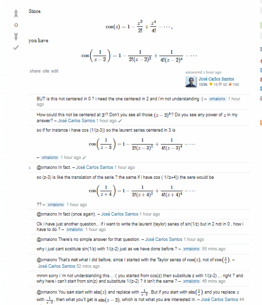 sI è lui , ma volevo evitare spam ahaha, comunque quindi è giusto che per calcolare lo sviluppo del sen(1/z) in 2 faccio lo sviluppo del sen(z) e agli z sostituisco 1/(z-2) ?? questo non ho capito ? ( ps scusa se rompo ahaha)