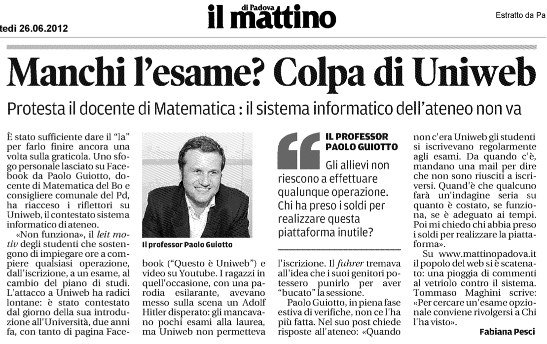 Mi stupisco di nuovo dell'efficienza dei sistemi informatici universitari... Al proposito un articolo interessante - non del tutto attinente - con un intervista al mio professore di analisi